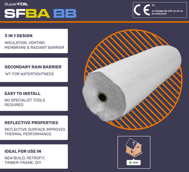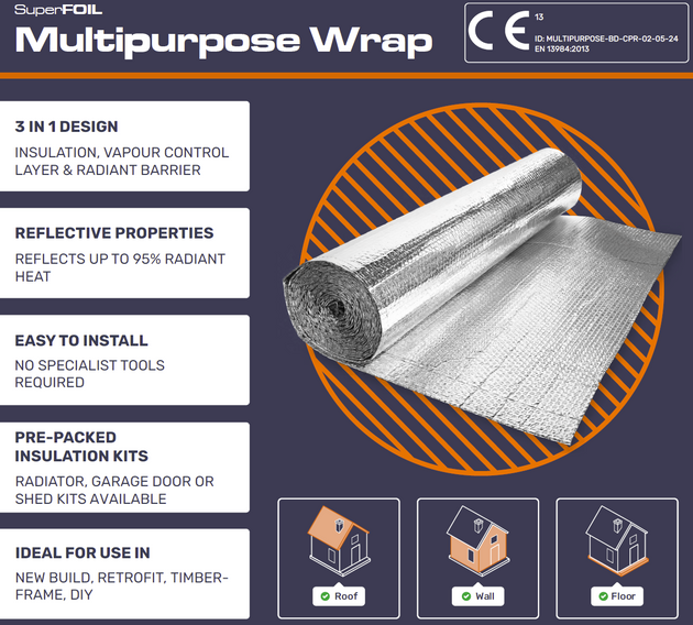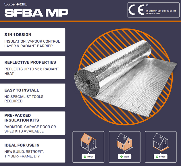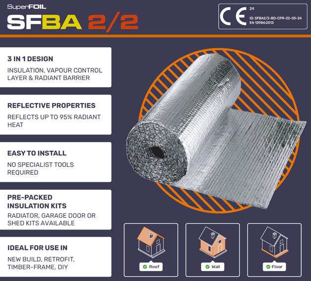 Thermal performance depends on the full construction build-up. Use the official SuperFOIL U-Value Calculator (available on the Home Page or Product Page) to verify compliance and optimise your insulation design.